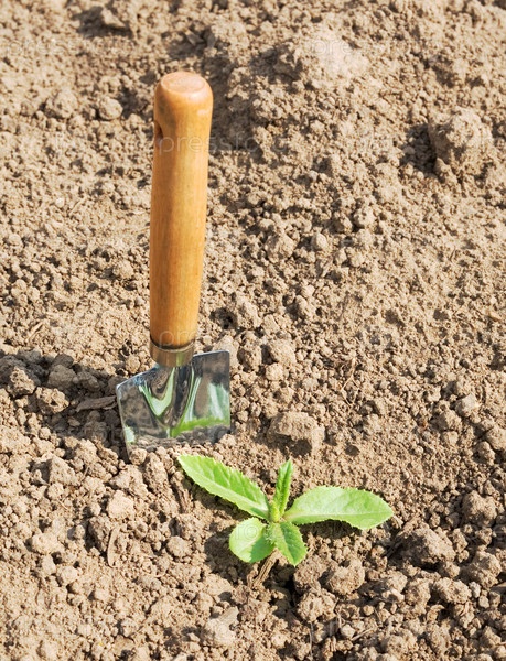 Лопата в земле и зеленой траве