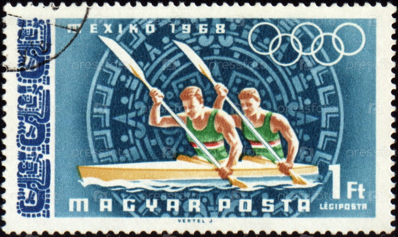 Почтовая марка Венгрии 1968 года, гребля, олимпийские игры в Мехико