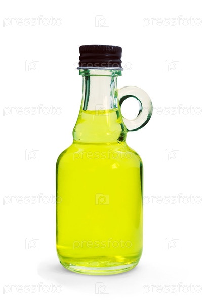 Бутылка эфирного масла на белом фоне