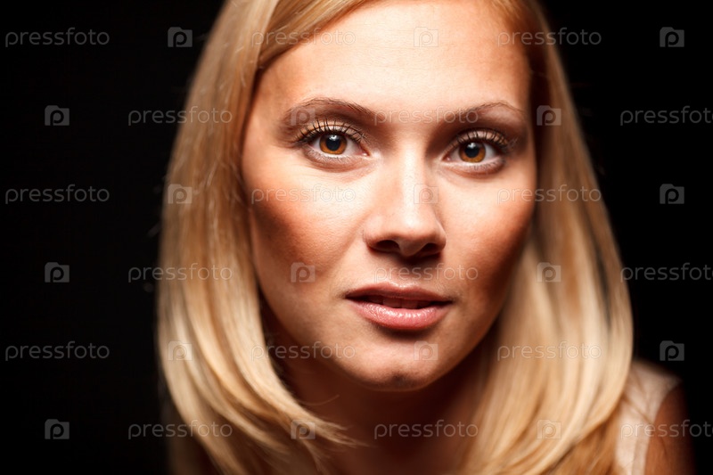 Портрет красивой девушки с длинными волосами на черном фоне