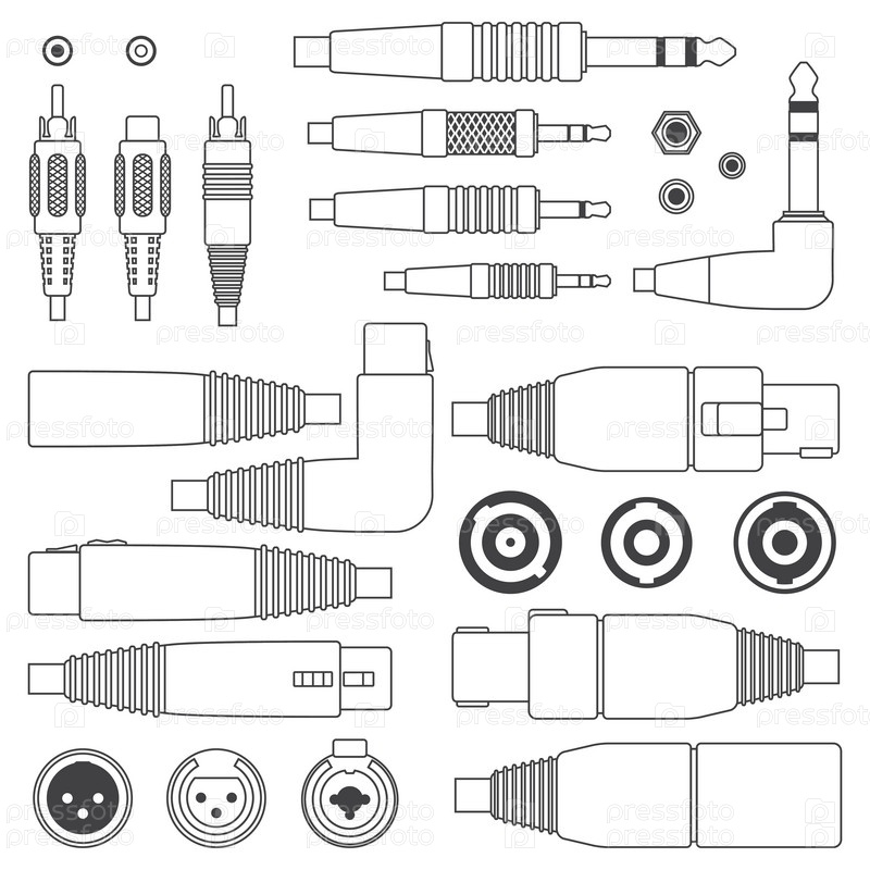 Виды штекеров и входы на белом фоне