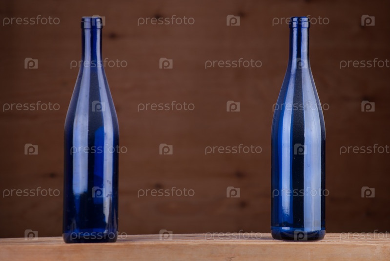 Бутылки на деревянном фоне
