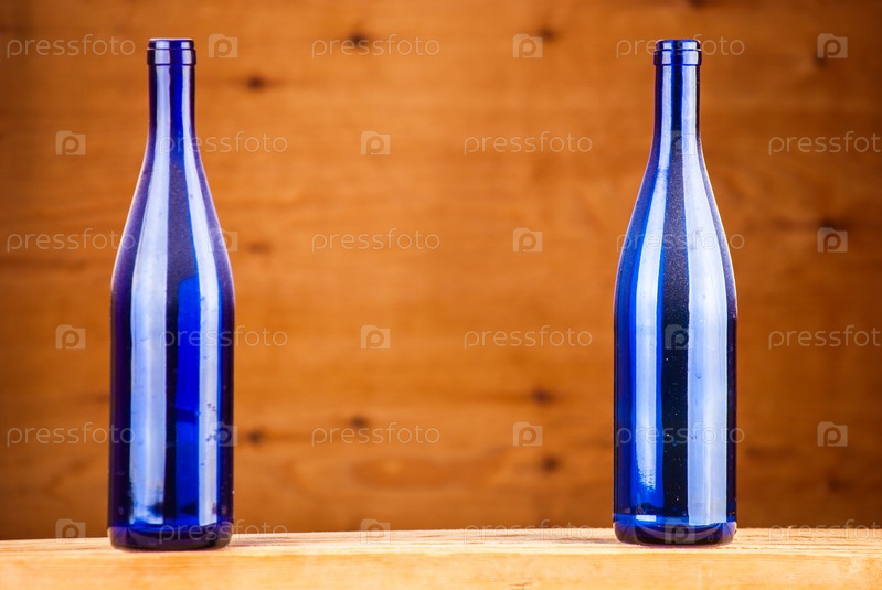 Бутылки на деревянном фоне