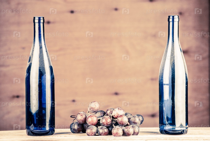 Бутылки и виноград