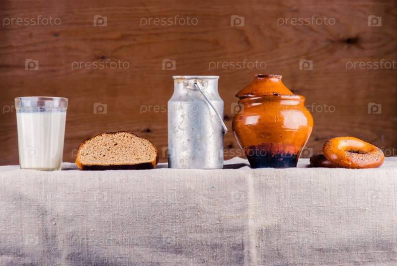 Хлеб и посуда на столе