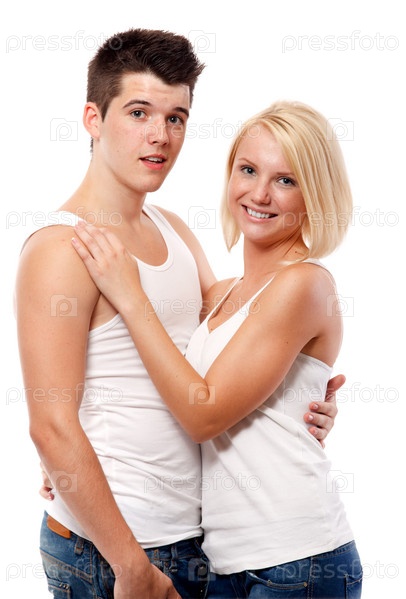 Красивая молодая пара на белом фоне