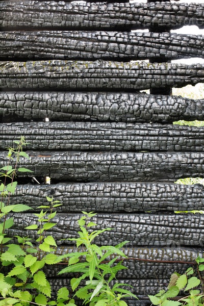 Черная поверхность обугленной трещины древесины
