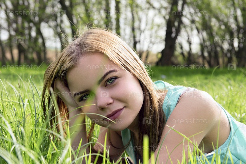 Молодая блондинка на траве