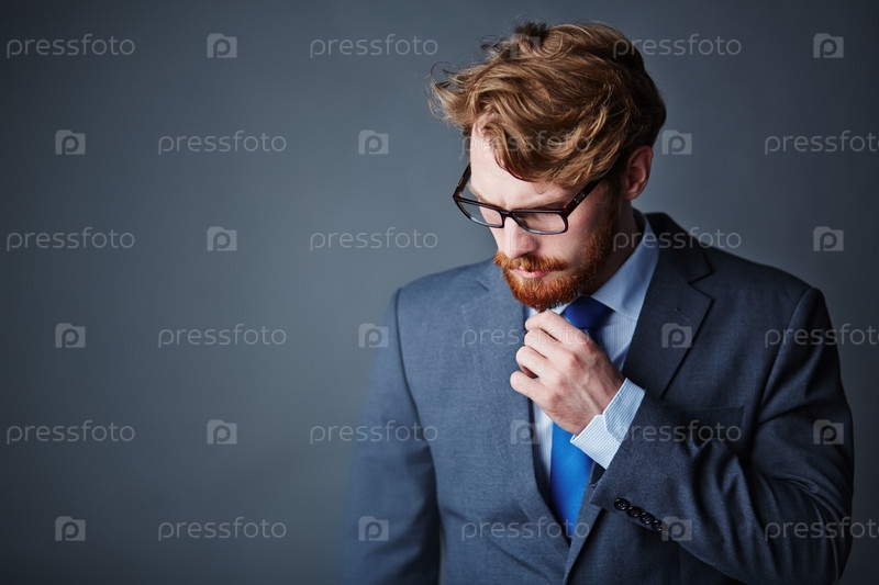Молодой бизнесмен на сером фоне