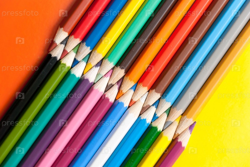 Разноцветные карандаши на цветном картоне
