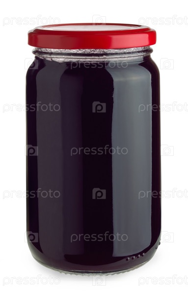 Банка черничного джема на белом фоне