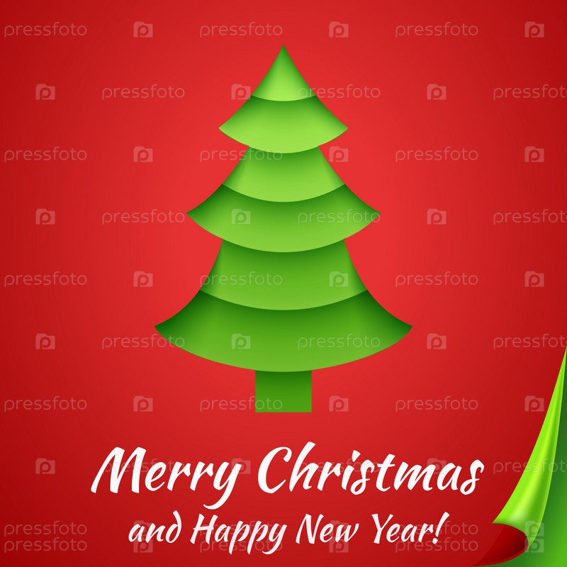 Веселая Рождественская открытка с деревом. Векторные иллюстрации