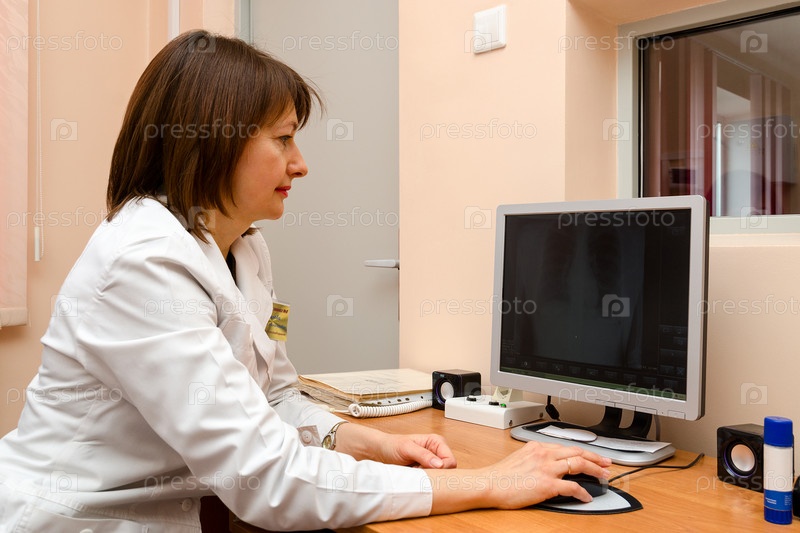 Рентгенолог просматривает цифровое изображение
