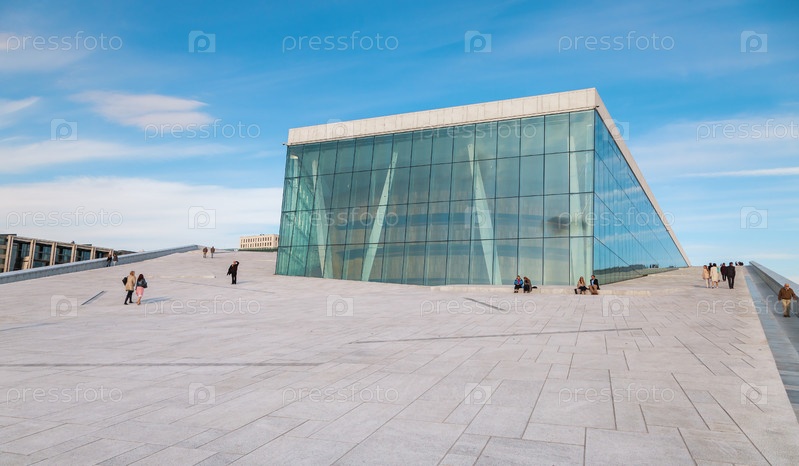 Люди на крыше норвежской национальной оперы и балета в Осло