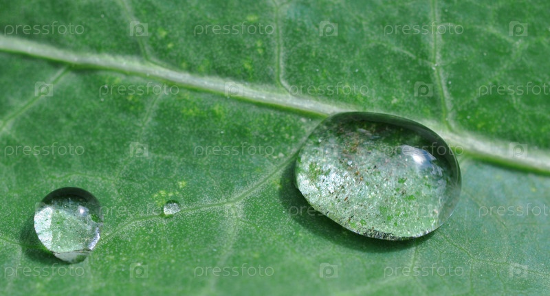 Капли воды на зеленом листе