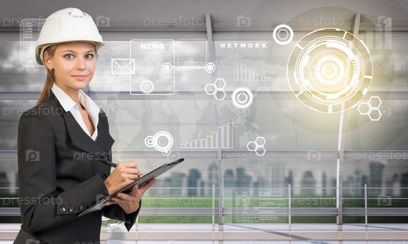 Молодая женщина в каске