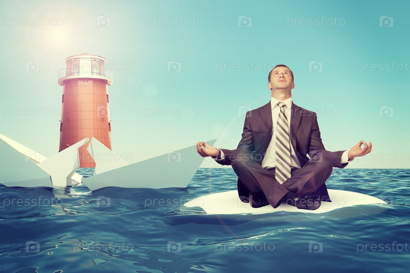 Бизнесмен в позе лотоса на воде