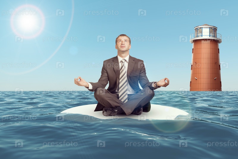 Бизнесмен в позе лотоса на воде