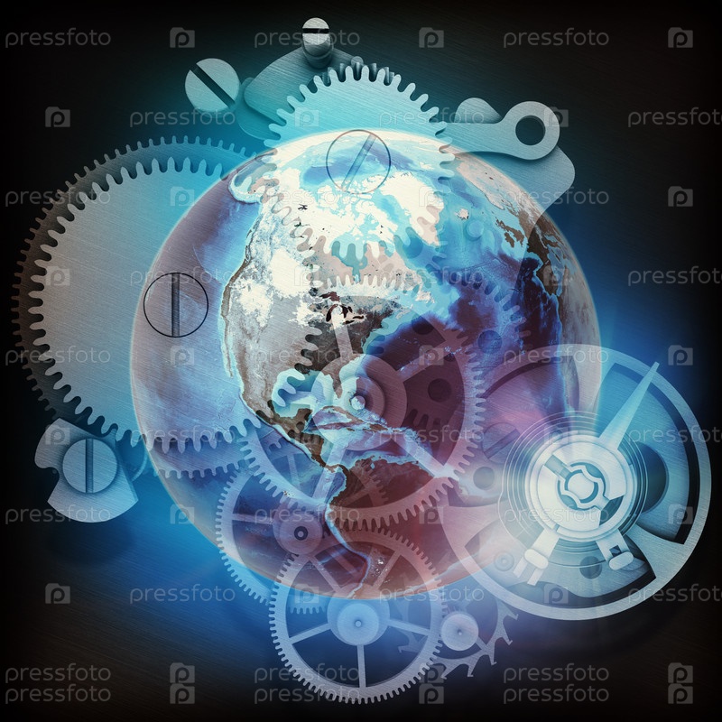 Абстрактный фон с шестеренками и планетой Земля
