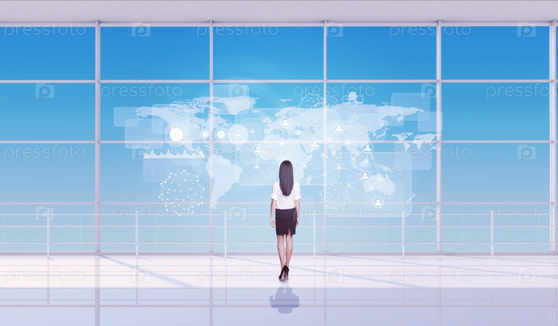Бизнес-леди на абстрактном фоне