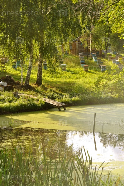 Ульи на берегу озера
