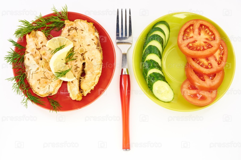 Тушеная рыба и овощи