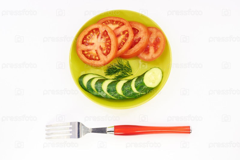 Огурец и помидор в тарелке
