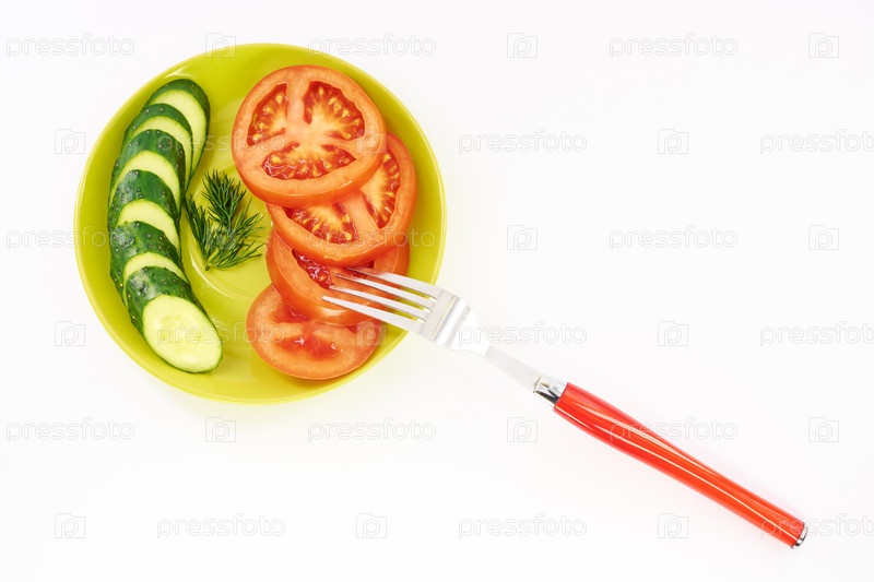 Огурец и помидор в тарелке