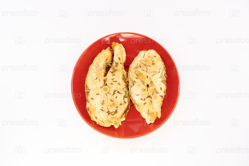 Рыба на красной тарелке