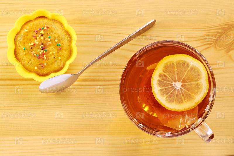 Черный чай с лимоном и кекс