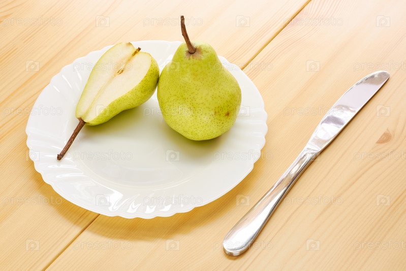 Груша на деревянном столе