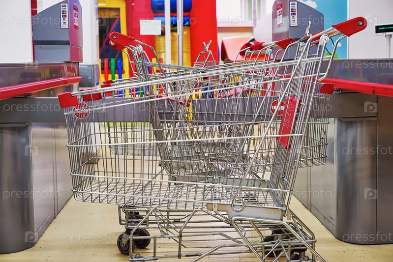 Пустые корзины в магазине