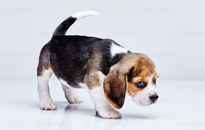 Щенок бигля на белом фоне