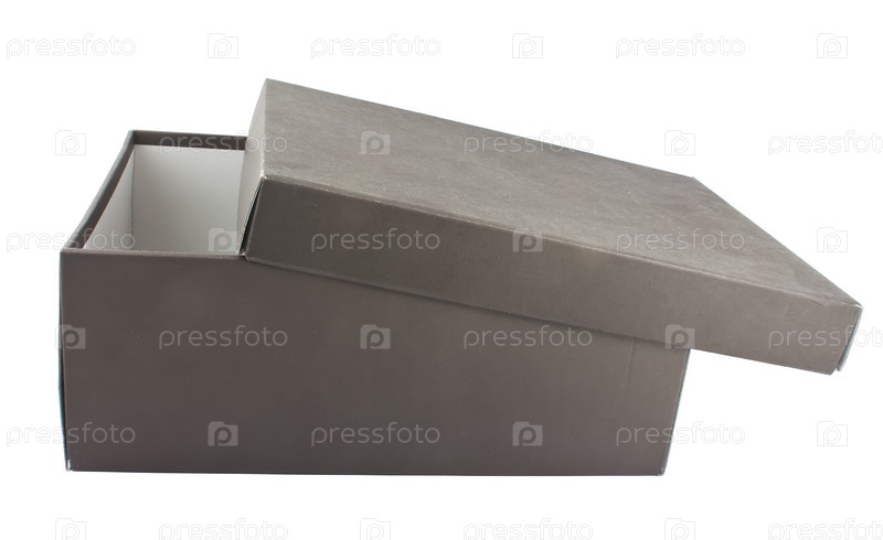 Открытая картонная коробка на белом фоне