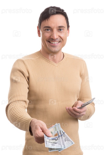 Мужчина, держащий купюры