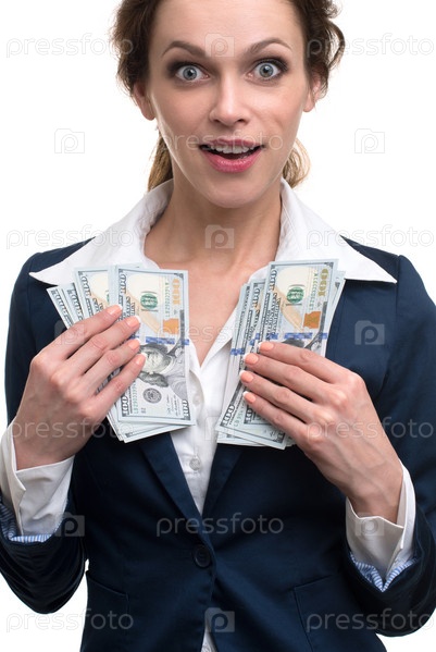 Бизнес-леди держит деньги
