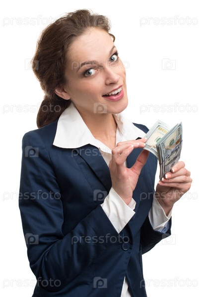 Бизнес-леди держит деньги