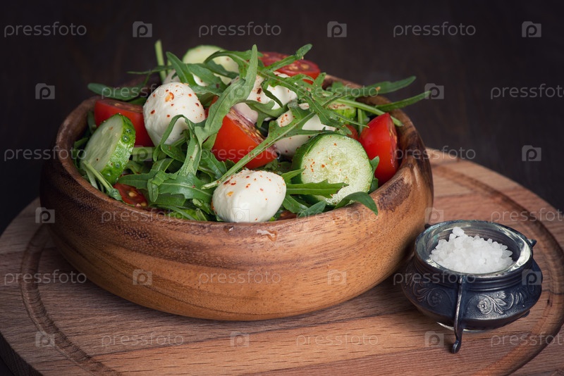 Свежий овощной салат с моцареллой и рукколой