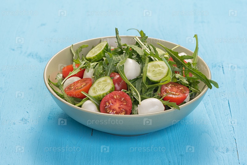 Свежий овощной салат с моцареллой и рукколой