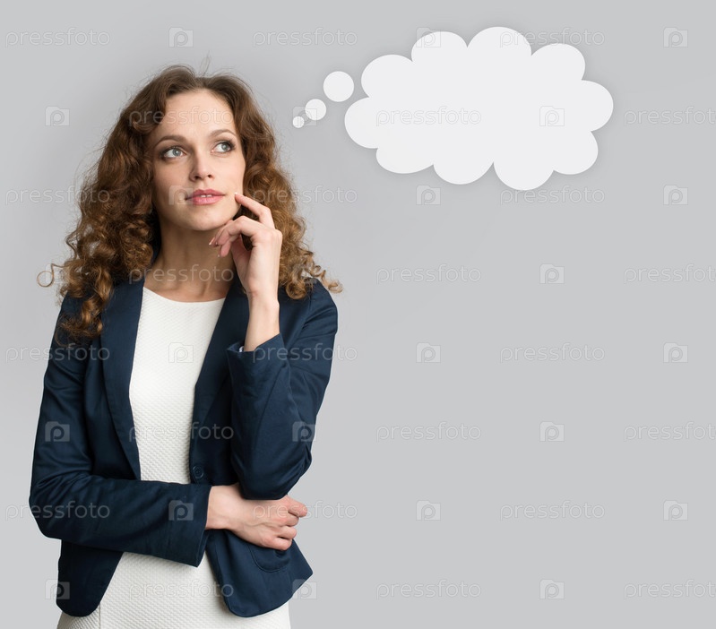 Задумчивая деловая женщина смотрит вверх