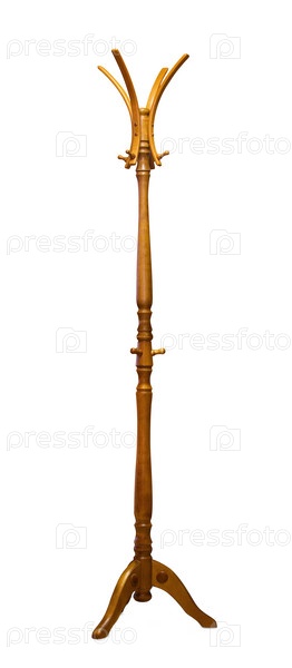 Деревянная вешалка на ножке для верхней одежды, изолированная на белом фоне