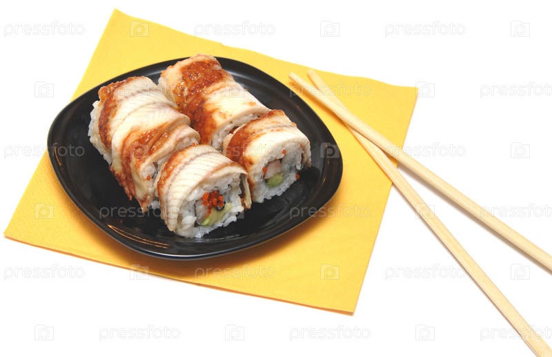Суши на тарелке с китайскими палочками