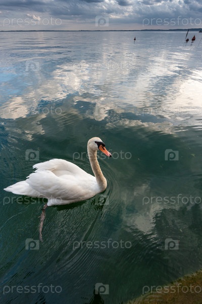 Белый лебедь на воде