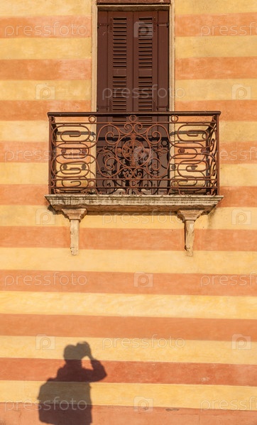 Дверь с балконом в венецианском стиле на улице Вероны