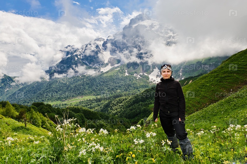 Турист на фоне гор Северного Кавказа