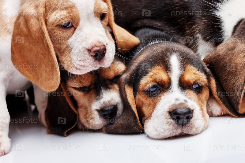 Щенки бигля на белом фоне