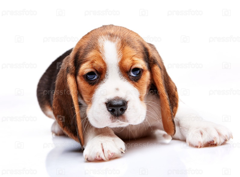 Щенок бигля на белом фоне