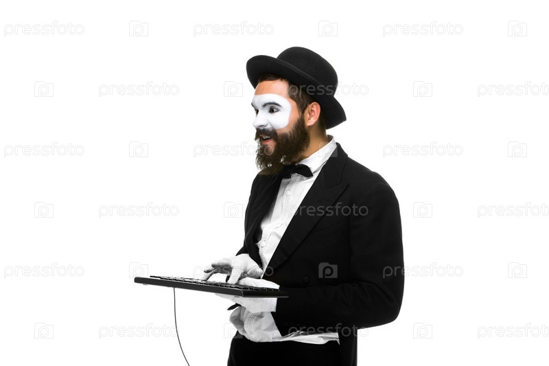 Мужчина в образе мима с клавиатурой