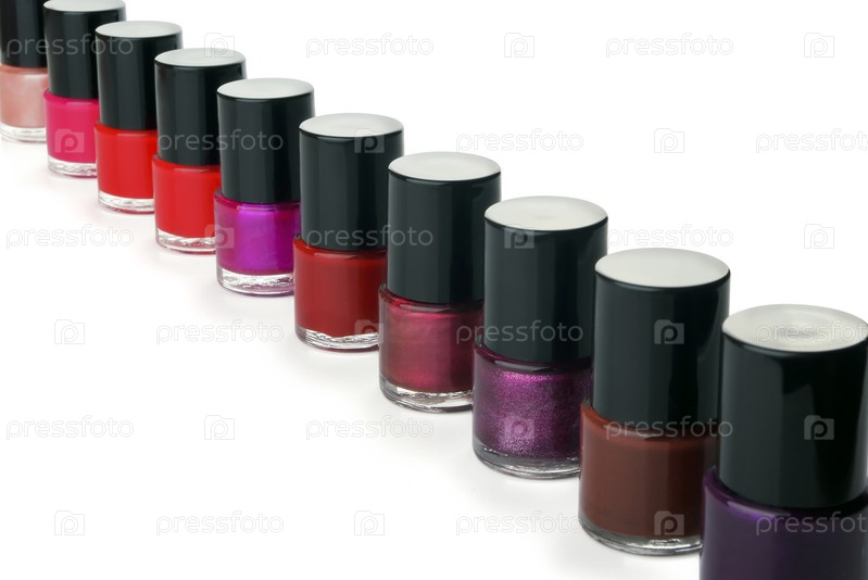 Лак для ногтей разных цветов на белом фоне