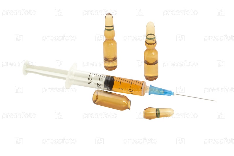 Медицинский шприц и ампулы